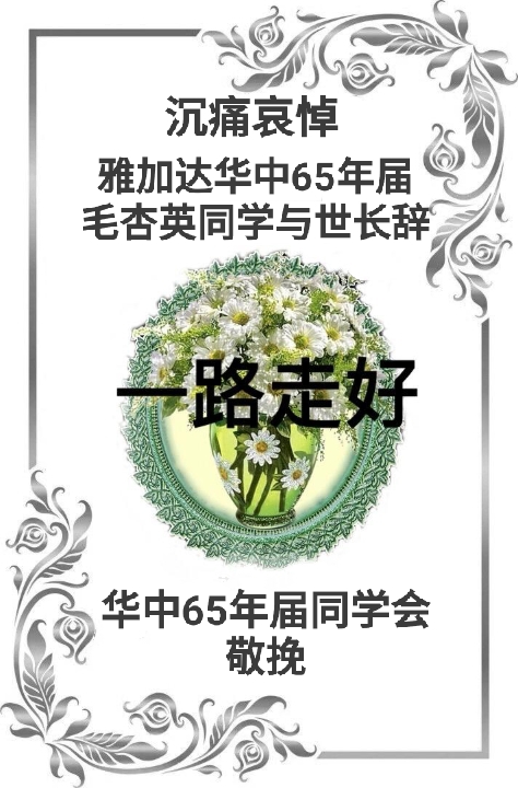 沉痛哀悼毛杏英同學逝世